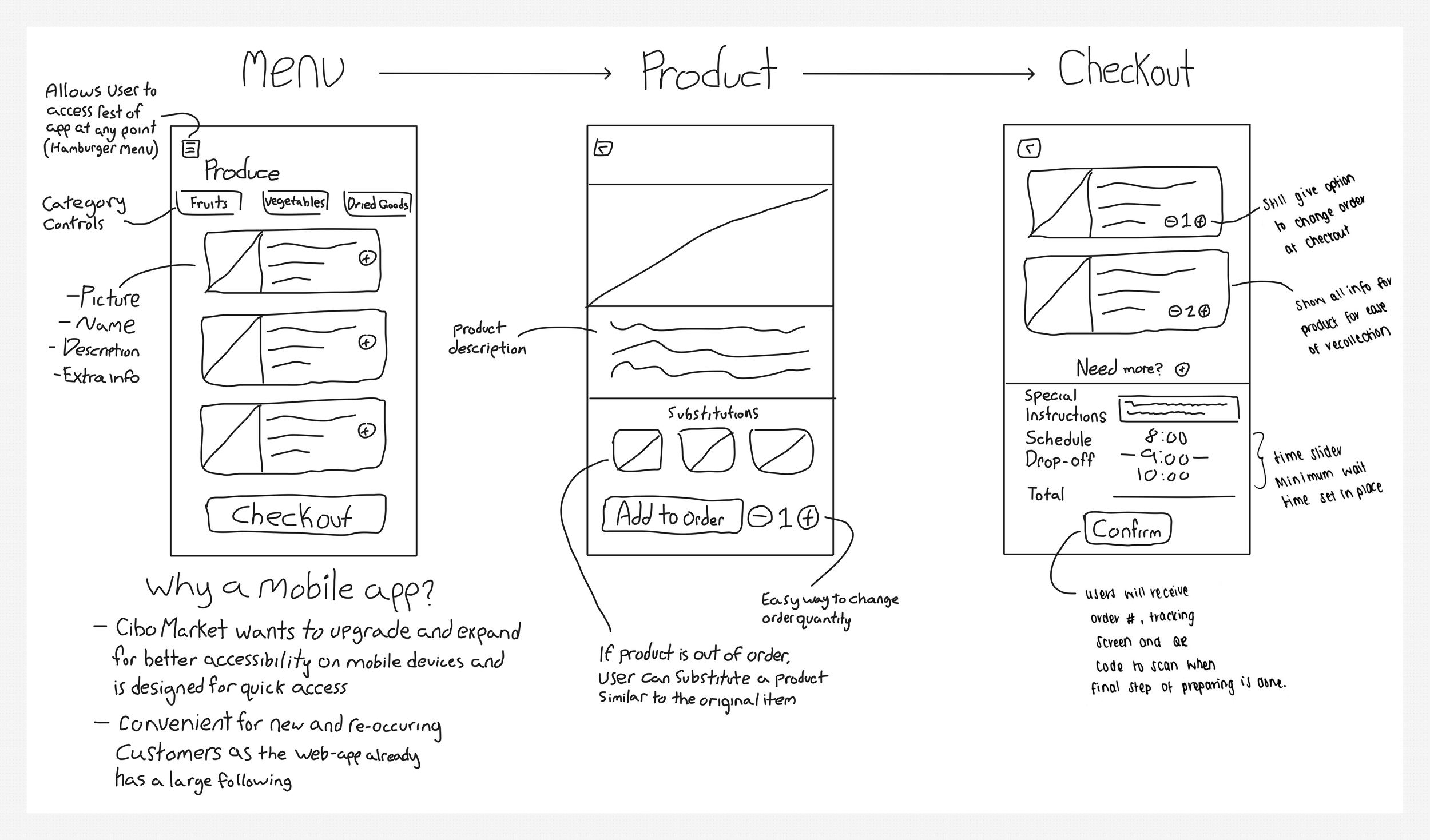 Throughout the twelve months, I focused on creating a web app for Cibo Market. In the beginning of the project, I thought it would be interesting to design a platform for the produce ordering service. I conducted some additional research and made some changes to the tasks that I had completed in project.